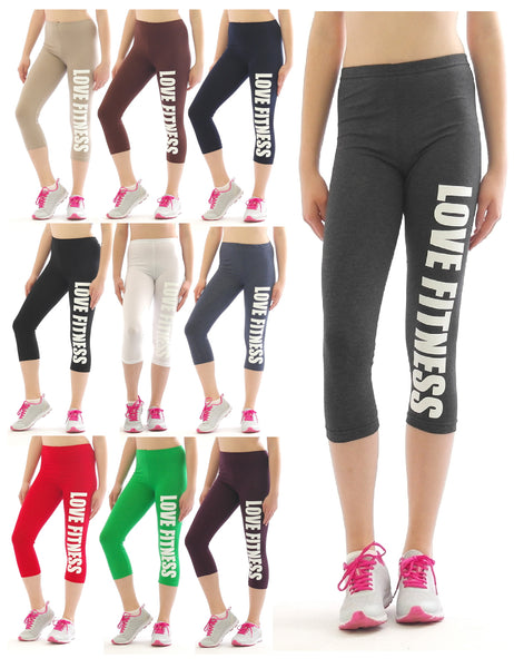 Mit aufgedruckten Schrift am linken Bein "LOVE FITNESS"